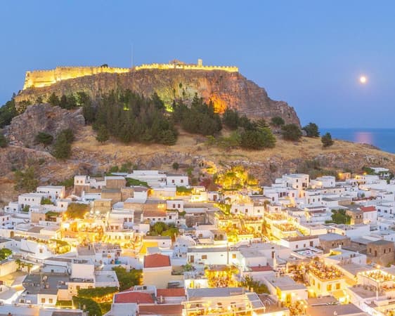 Ontdek de fascinerende allure van Lindos, een verborgen juweeltje gelegen aan de oostkust van het betoverende eiland Rhodos, Griekenland. Dit pittoreske dorp is een oase van rust, boordevol een unieke mix van natuurlijke schoonheid, rijke geschiedenis en warme Griekse gastvrijheid. In Lindos zijn de geplaveide straten omzoomd met witgekalkte huizen, waardoor een reis door de stad het gevoel krijgt dat je een stap terug in de tijd doet. Het dorp wordt gekroond door de oude Lindos Akropolis, een opvallende locatie op de top van een klif die een prachtig panorama biedt op de glinsterende Egeïsche Zee en het omringende landschap. Dit historische monument is een bewijs van het rijke verleden van Lindos en herbergt overblijfselen uit het Byzantijnse rijk, de Ridders van Sint-Jan en zelfs eerdere beschavingen. De stranden van Lindos zijn een paradijs voor zonaanbidders. Het hoofdstrand, een halve maan van goudkleurig zand omspoeld door kristalhelder water, is perfect voor zowel ontspanning als watersporten. Voor degenen die op zoek zijn naar een rustiger plekje, biedt St Paul's Bay, met zijn turquoise water omsloten door een rotsachtige baai, een serene ontsnapping. Het dorp zelf is een labyrint van smalle kronkelende straatjes, gevuld met traditionele taverna's, chique bars op het dak en boetiekjes die lokaal handwerk verkopen. 's Avonds verandert Lindos in een levendig centrum van activiteit, met een verscheidenheid aan bars en restaurants die heerlijke lokale gerechten en verfrissende cocktails serveren. Ga verder dan het dorp en je zult olijfgaarden, wijngaarden en wandelpaden vinden die de ongerepte schoonheid van Rhodos onthullen. Of u het eiland nu te voet, per fiets of te paard verkent, de adembenemende uitzichten zullen in uw geheugen gegrift blijven. Van historische bezienswaardigheden tot prachtige stranden, van rustige wandelingen in de natuur tot een bruisend nachtleven, Lindos biedt een perfecte mix van attracties voor elke reiziger. Dus kom, ontdek dit charmante Griekse dorp zelf en creëer onvergetelijke herinneringen in het hart van de Egeïsche Zee.